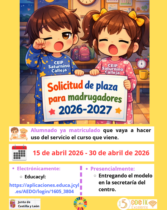 Haz clic aquí o en la imagen para acceder al modelo de presentación de SOLICITUD DE PLAZA DE MADRUGADORES 2026-2027.